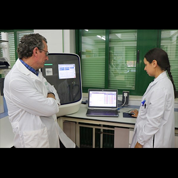 Los investigadores Juan José Garrido y Sara Zaldívar, en el laboratorio. (Foto: UCO)
