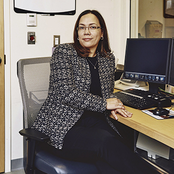Yakeel Quiroz, directora del laboratorio de neuroimagenología de demencia hereditaria en el Hospital General de Massachusetts, evaluó a la colombiana.Credit...Tony Luong para The New York Times