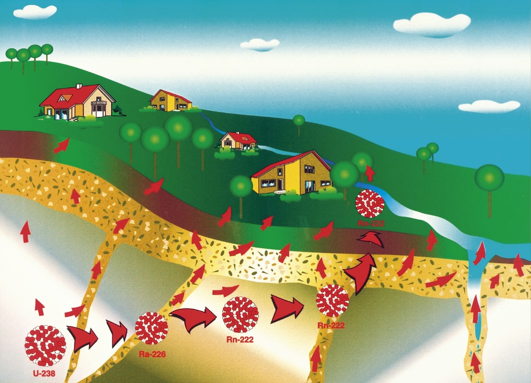 La concentración de radón en el suelo ha sido utilizado de manera experimental para ubicar fallas geológicas cercanas a la superficie, ya que la concentración es generalmente más alta sobre las fallas.8 Algunos investigadores han tratado de probar que las concentraciones elevadas de radón en el suelo o los cambios rápidos en las concentraciones de radón en el suelo o agua subterránea pueden servir para predecir terremotos.9
