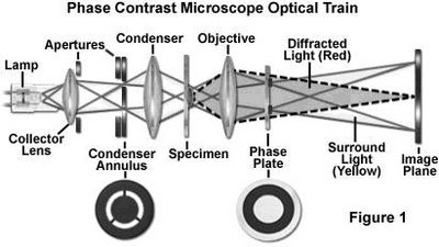 Fundamentalmente el microscopio de contraste de fase es un microscopio óptico de campo claro con algunas modificaciones, como objetivos y condensadores especiales.