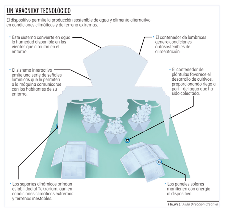 No se trata de un cuento de horror de Edgar Allan Poe ni tampoco de un artefacto tecnológico posapocalíptico del universo de la serie Black Mirror, sino del Tekrarium, un sistema autosostenible de producción de alimento y agua que podría ser la respuesta a la problemática de desnutrición que viven cerca de 821 millones de personas en el mundo, según cifras de la Organización Mundial de la Salud publicadas en septiembre de este año.